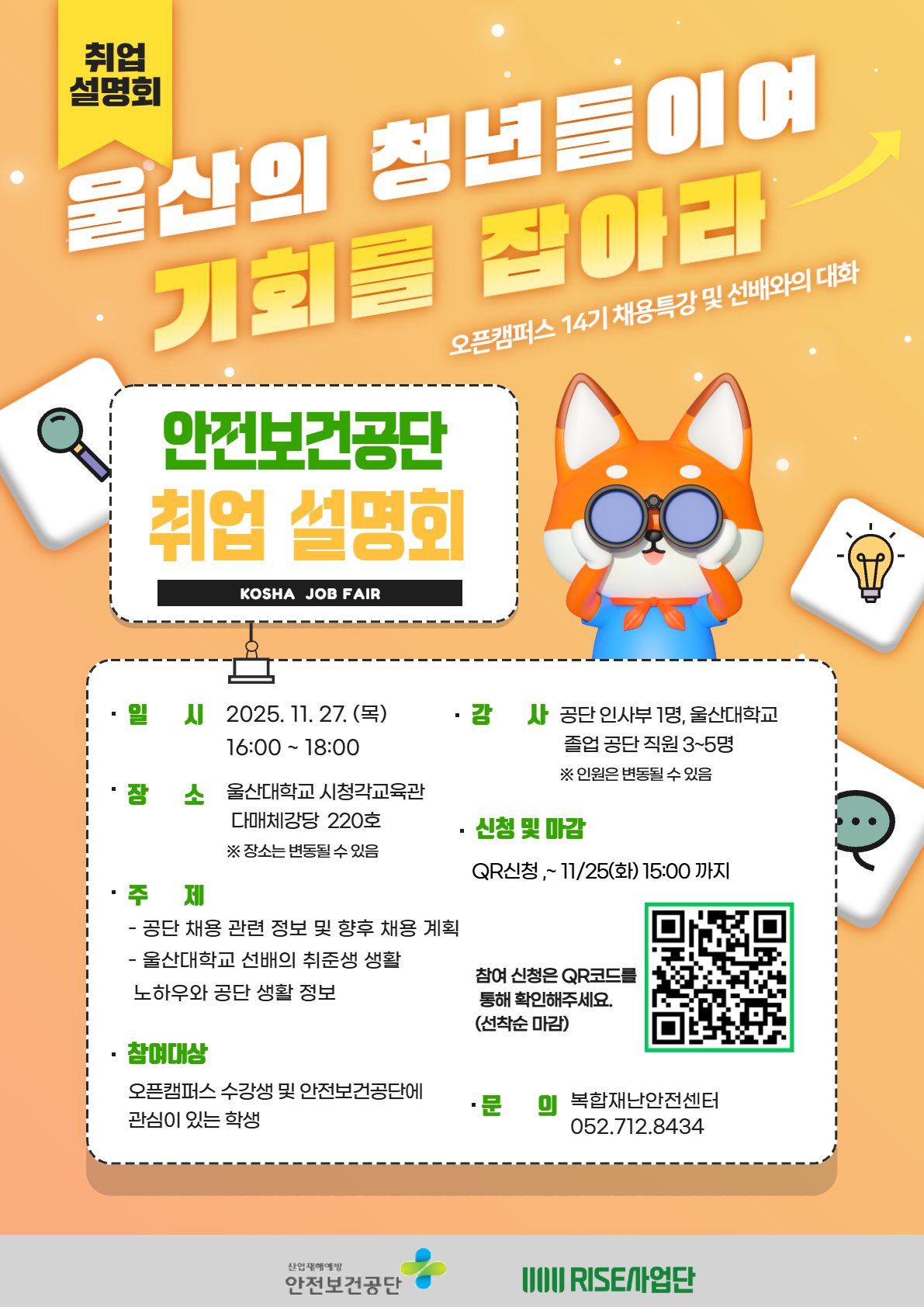 [안전보건공단 취업 설명회] 1. 공단 취업? 인사팀 + 선배가 직접 알려준다! (11/27, 목) [안전보건공단 취업 설명회]
